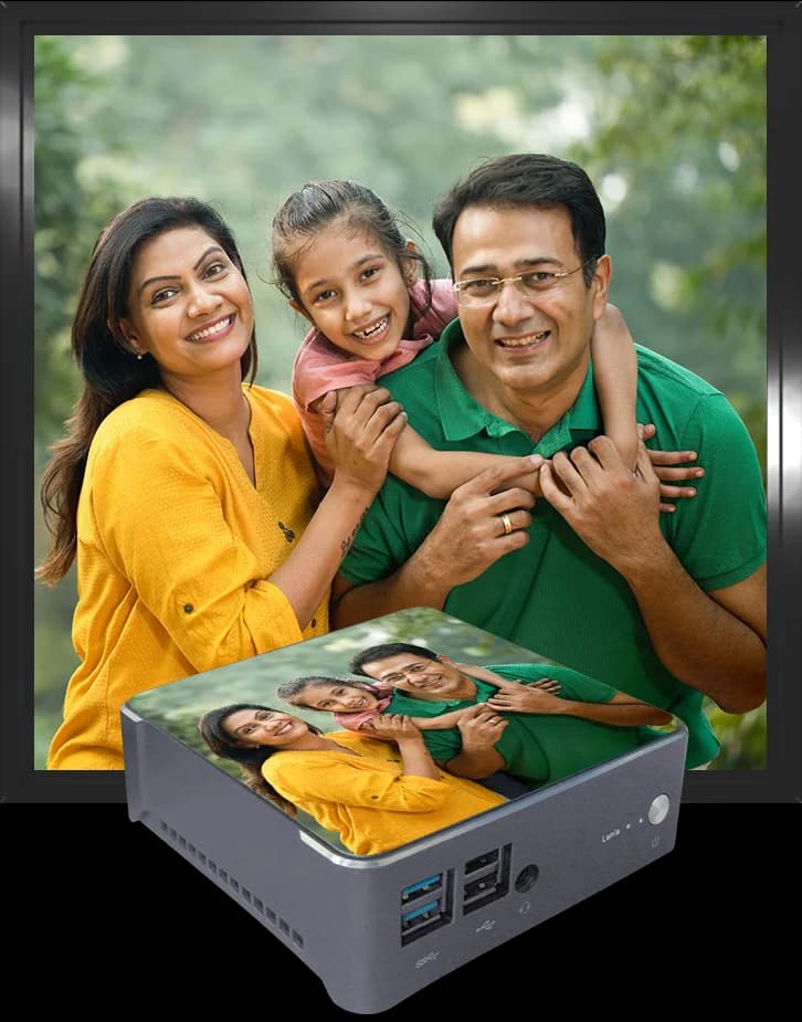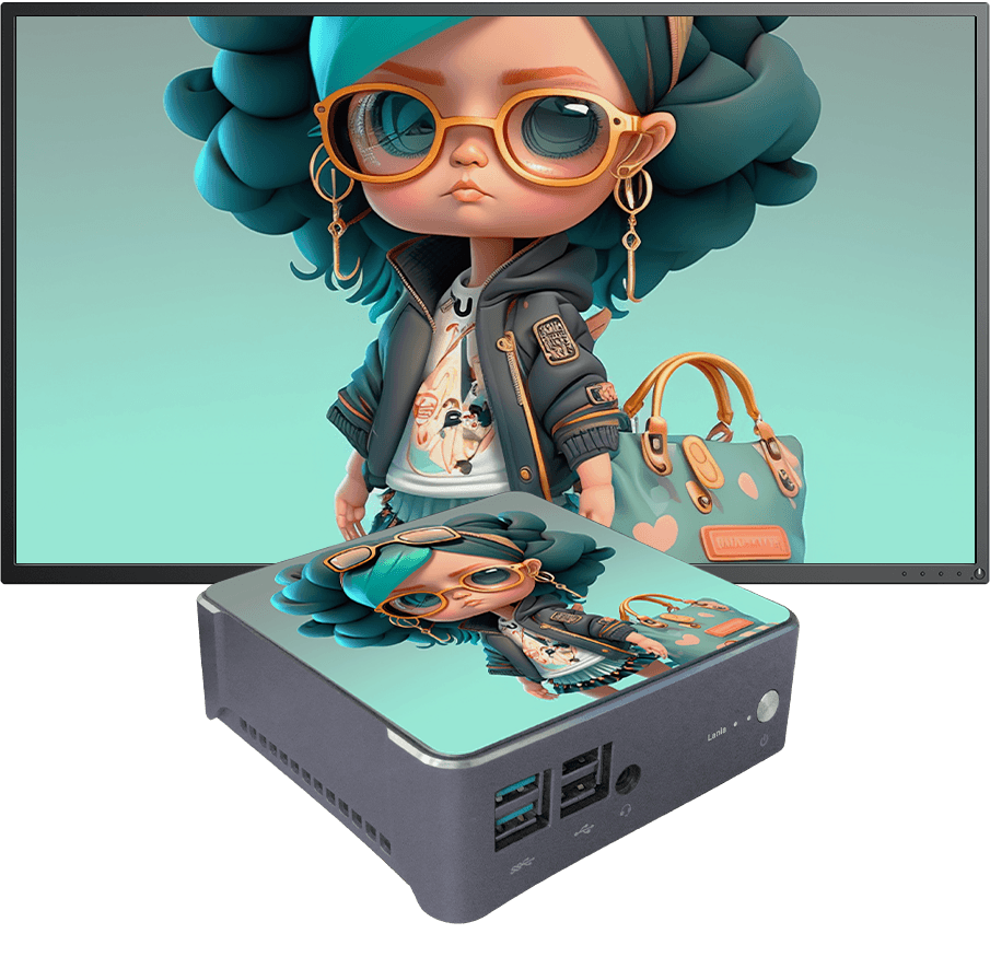 Meet Lania, the stylish mini PC from Qbits Brand that combines cutting-edge technology with personalization. Elevate your setup by customize its cover with cherished memories or captivating image using our state-of-the-art laser printing technology. Gift a Mini PC that not only delivers seamless performance but also reflect your distinctive style.
